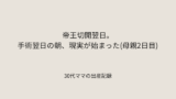 朝担当の助産師さんによれば、昼には背中に刺さっている麻酔の管を抜くらしい。